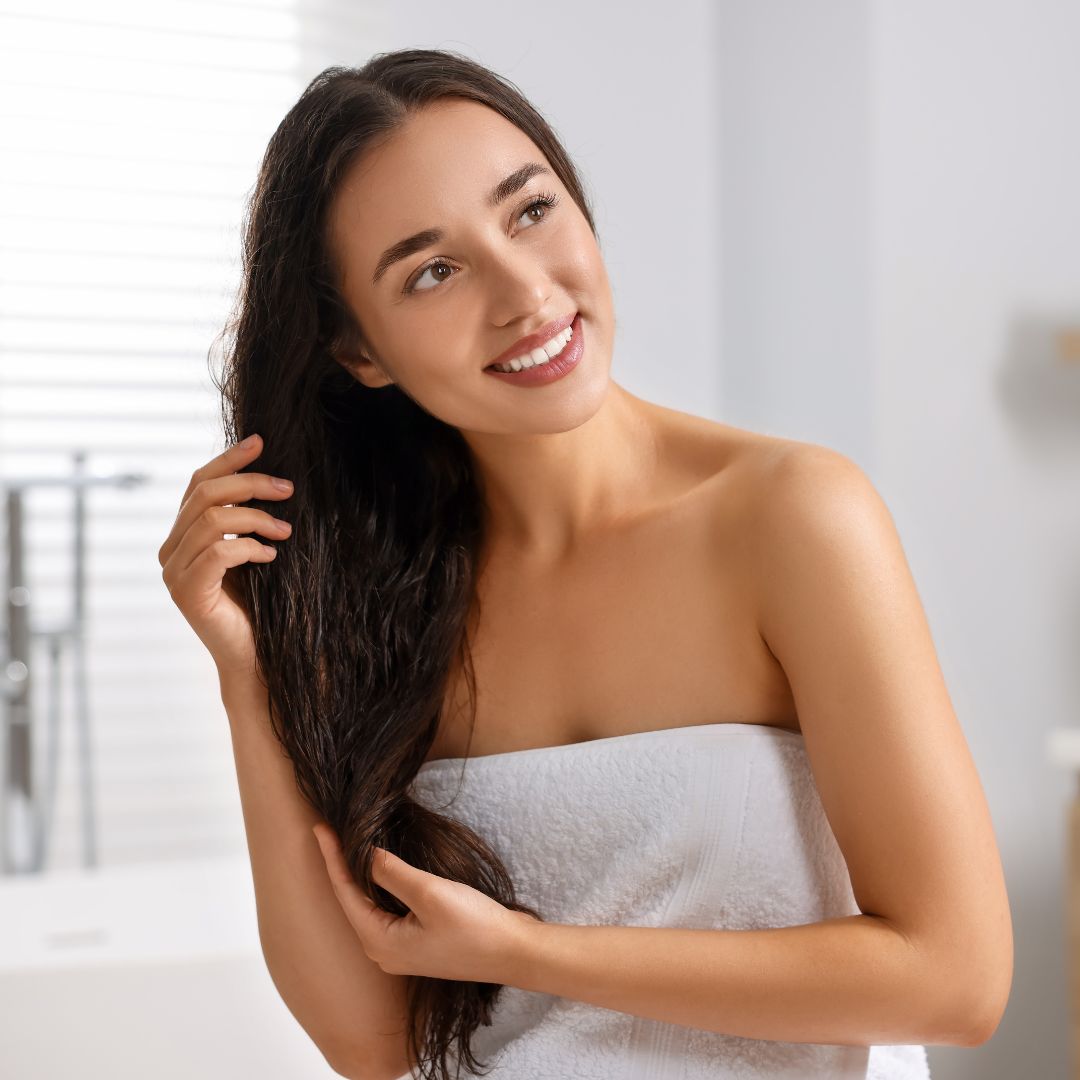 Нанесете балсам от корените по цялата дължина на косата. Не отмивайте.